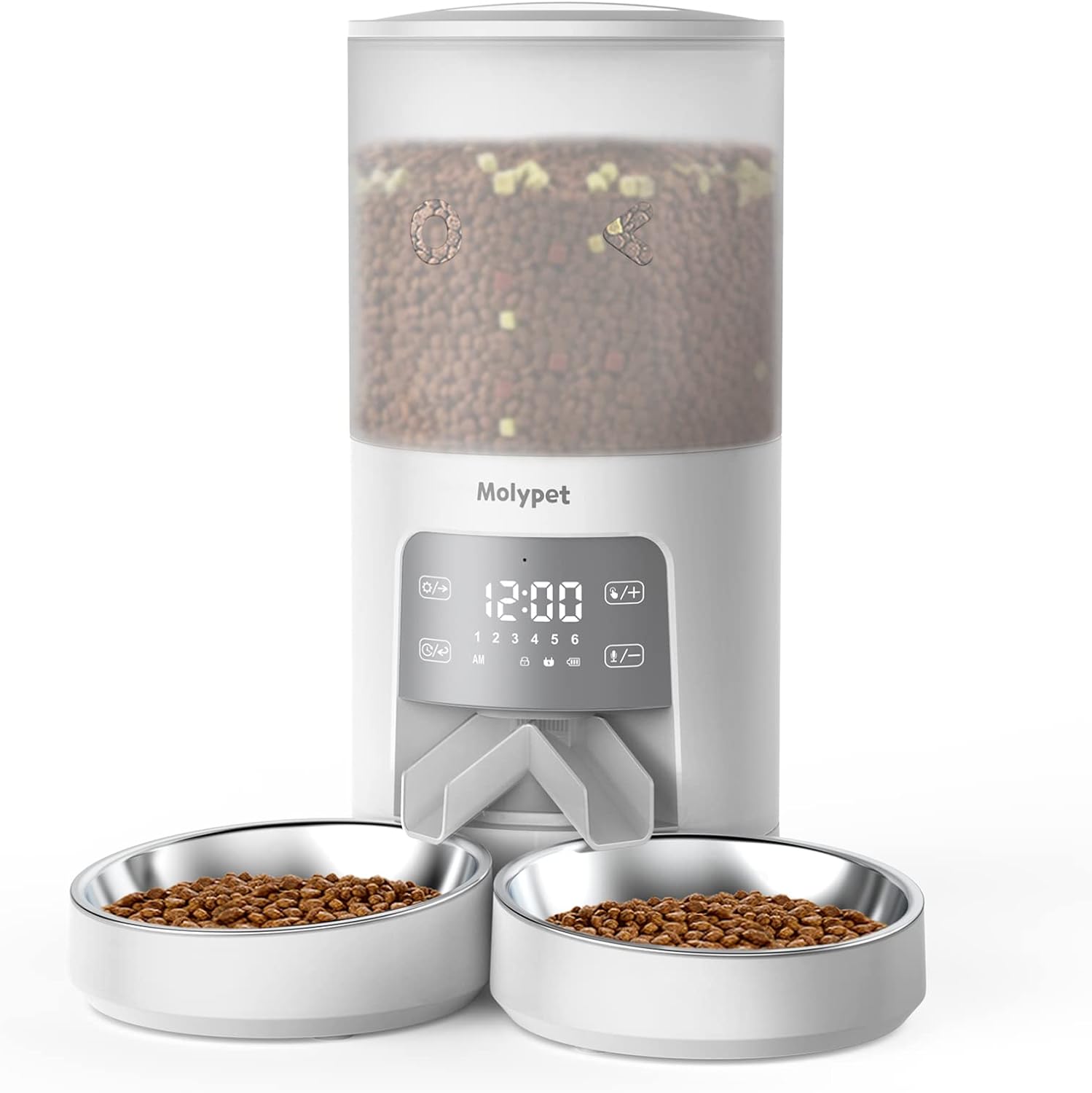 Molypet Computerized Cat Feeder for two Cats - 6L Cat Meals Dispenser with Double Bowls, Programmable Timed Cat Feeder as much as 6 Meals per Day with 10S Voice Recorder