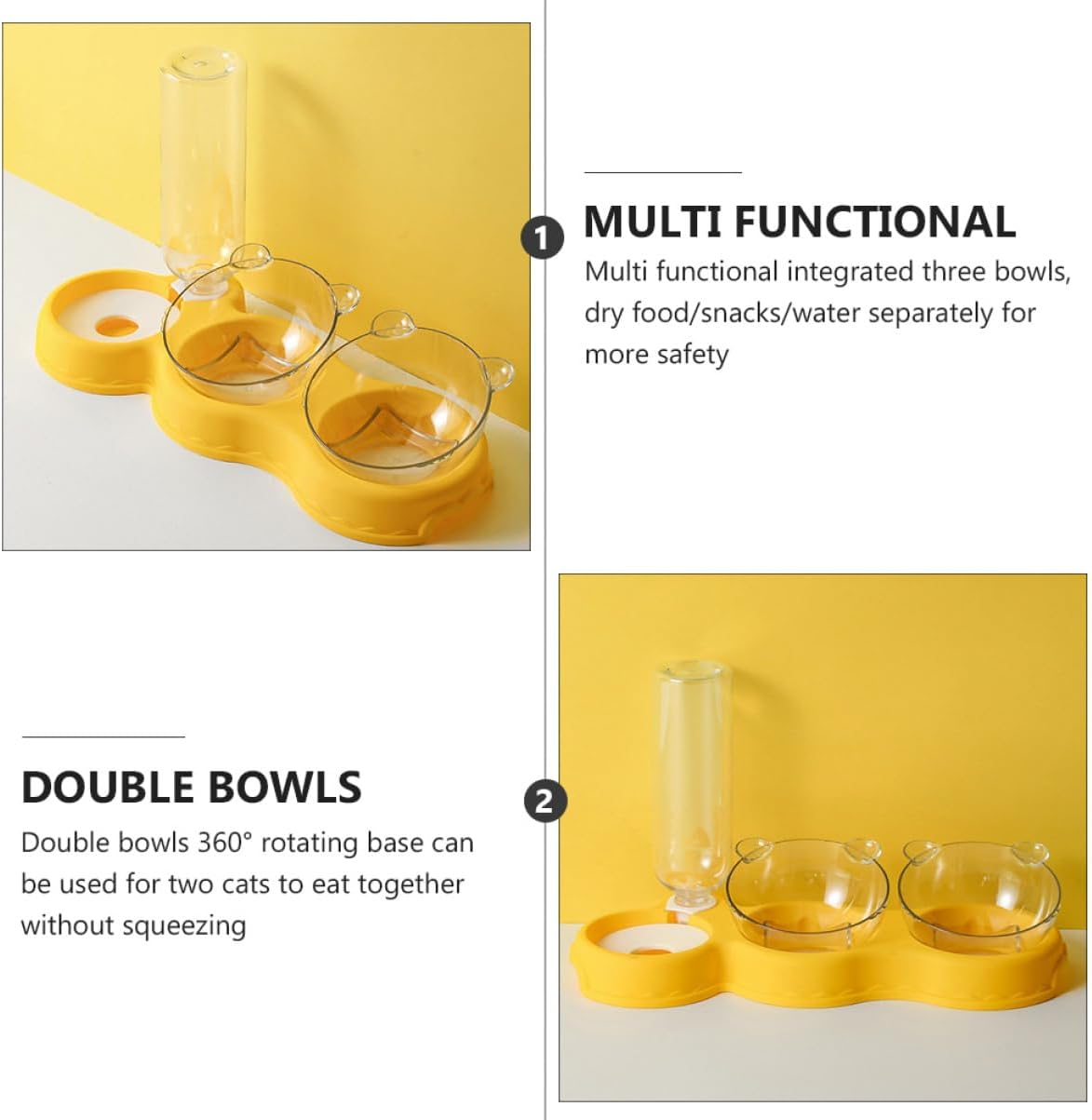 3-in-1 Cat Bowl This product contains 2 meals bowls and 1 computerized water dispenser bottle with no-spill design.Cat Feeder Good mixture so that you can feed your beautiful cat, kitten or small pet.Cat Provide Our water dispenser and meals bowls undertake food-grade materials, and wholesome for pet to make use of