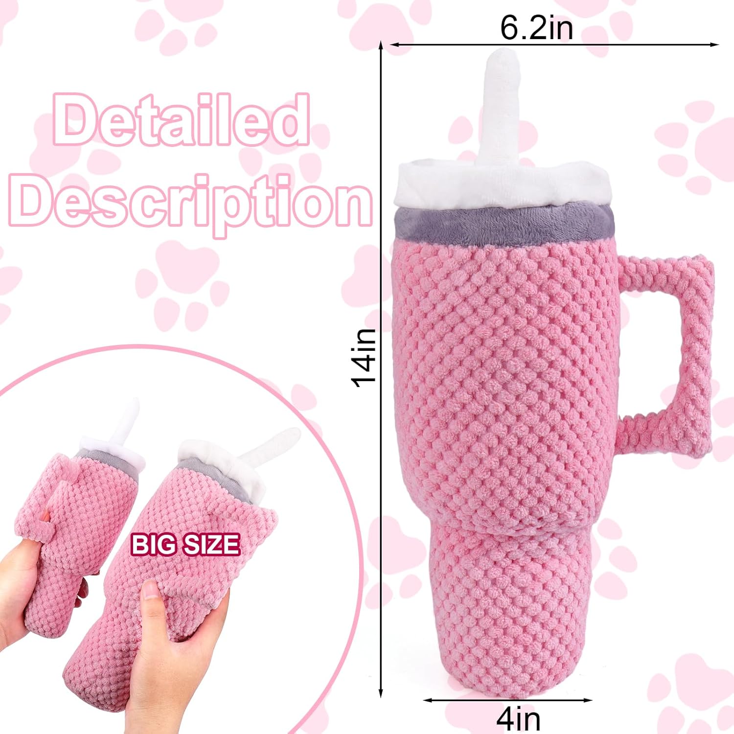 [Novedoso y hermoso diseño] Proporcionar el diseño generalizado taza para llevar la novedad a su perro, y el interior está lleno de pelusa con el fin de que sea muy cómodo al tacto de la vista general, nuestro juguete taza podría ser muy lindo, me imagino que su perro le encantará los juguetes chirriante canino