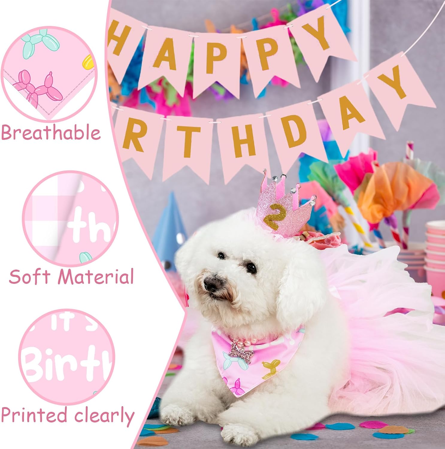 Pañuelos de cumpleaños rosas, felicitaciones de vacaciones únicas: Las bandanas rosas con las frases "Completamente feliz cumpleaños" están hechas de materiales sentimentales de algodón transpirable. Son suaves y acogedoras, realzando el ambiente de la ocasión. Evitarán que la mascota ensucie la ropa y son, además, un magnífico adorno de estilo.