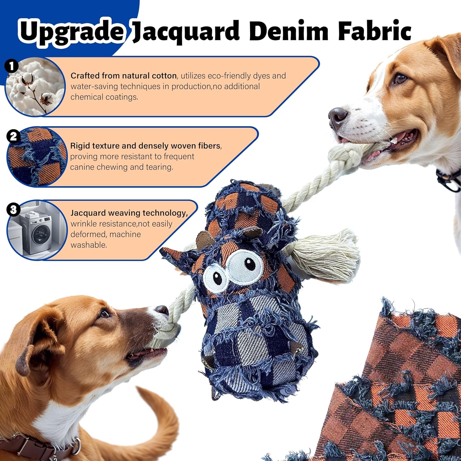 [Tejido seguro mejorado]: Este juguete de felpa canina se hace a mano de puro algodón grueso y material de mezclilla jacquard, haciendo cierta seguridad a su canino. El respetuoso del medio ambiente, biodegradable y lavable canino chirriante juguete de felpa es más robusto que los suministros de felpa comunes, proporcionando resistencia a la masticación. La distintiva textura jacquard evita la deformación, por lo que es ideal para perros pequeños y medianos. Ideas de calor: No apto para perros agresivos.