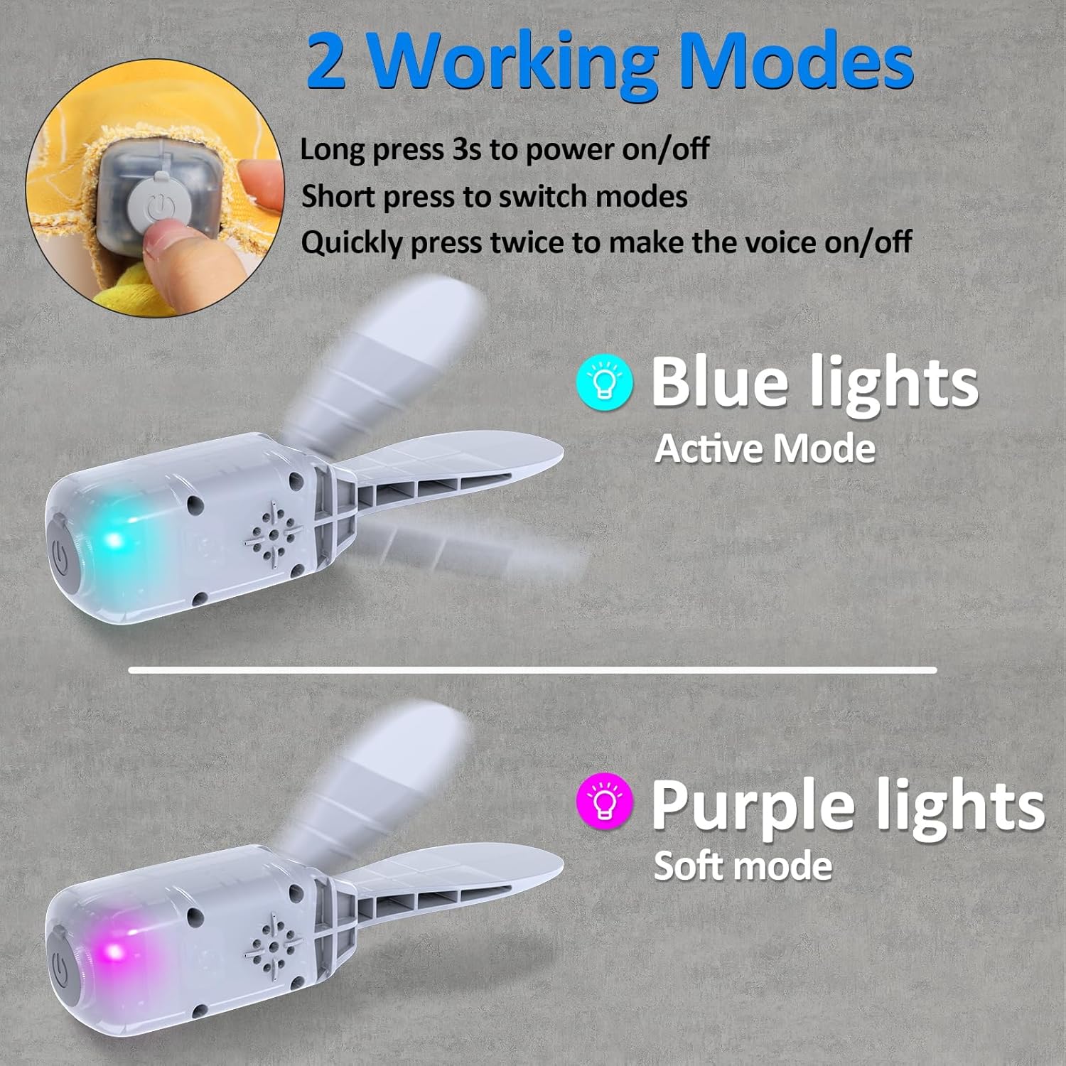 TWO working mode - Lengthy press 2s to energy on, the interactive canine toy wiggling for 45s after each touched, this bone encourage enjoyable stimulation for canines, when canines contact/play it, make the bones working 45s once more. Energetic mode(blue lights) suggest for prime power grownup canines, Regular mode (purple lights) higher for younger pet