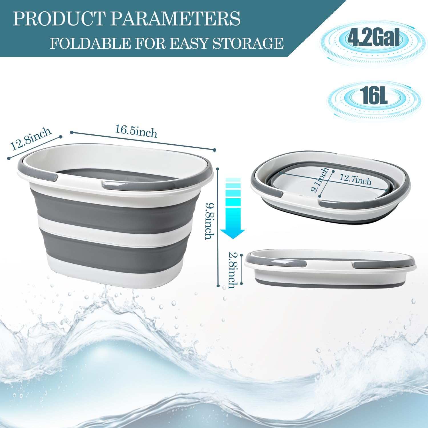 Foldable and transportable: The Multifunctional Foldable Bucket is simple to retailer and doesn't take up area. Open dimensions: 16.5" lengthy x 12.8" vast x 9.8" ,excessive when folded, solely 3.5" excessive,Capability: 4.3Gal/16L