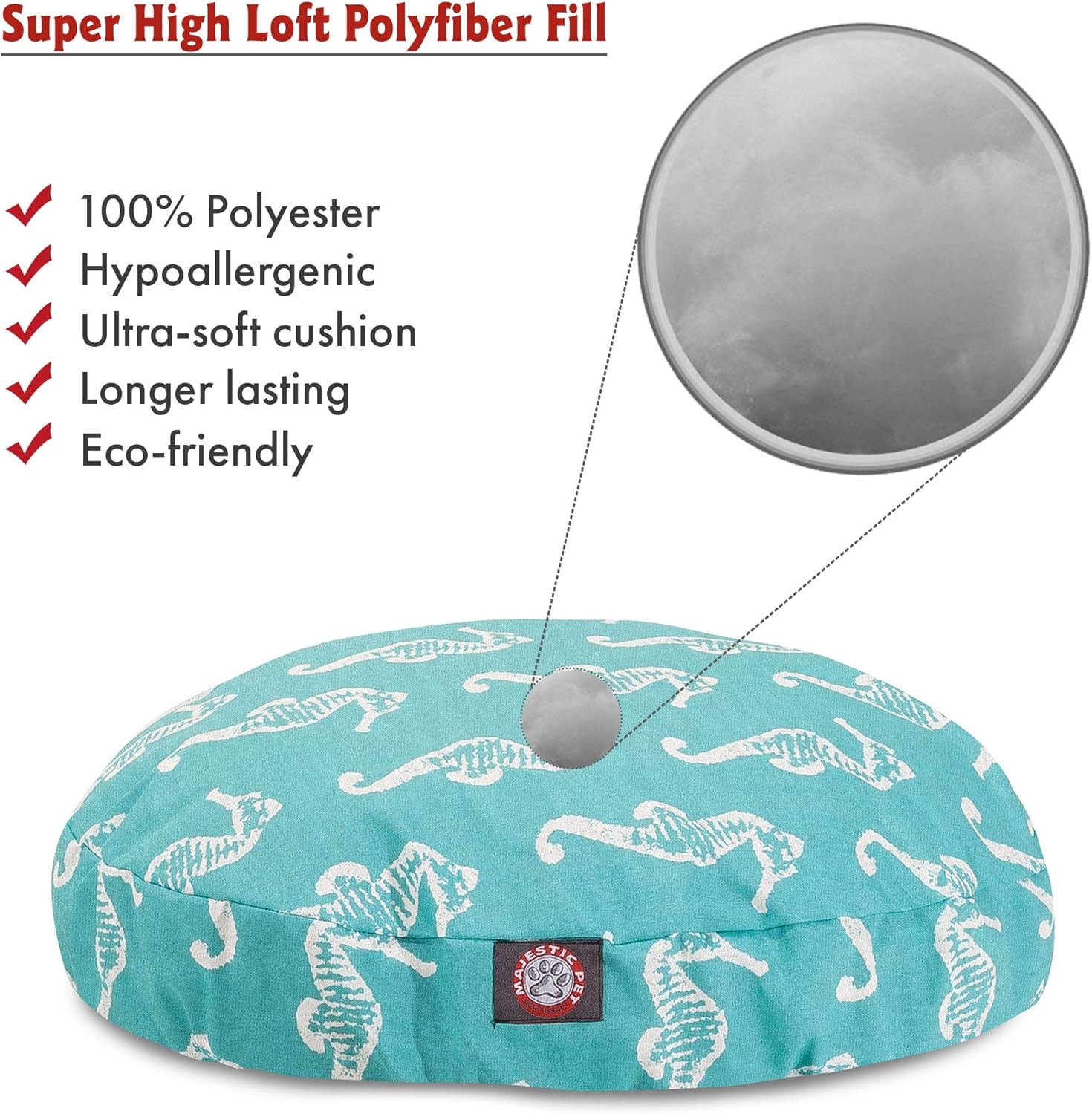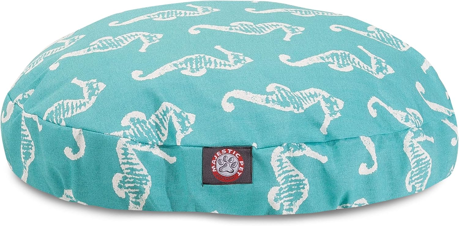Add luxurious consolation to your pets life with the Teal Sea Horse Pet Mattress. The Majestic Pet Teal Sea Horse Giant Spherical Pet Mattress is the right mixture of fashion, operate and luxury. It encompasses a detachable zippered slipcover that's woven from sturdy Out of doors Handled polyester, with 1000 hours of UV safety. The bottom of the mattress is manufactured from heavy responsibility waterproof 300/600 Denier material, which lets you transfer your pet wherever you might be, inside or out. Every mattress is full of an excellent plush fiberfill that gives ample quantities of consolation. To clean: Spot clear the slipcover with a gentle detergent and cling dry. Dimensions: 42 x 42 x 5.