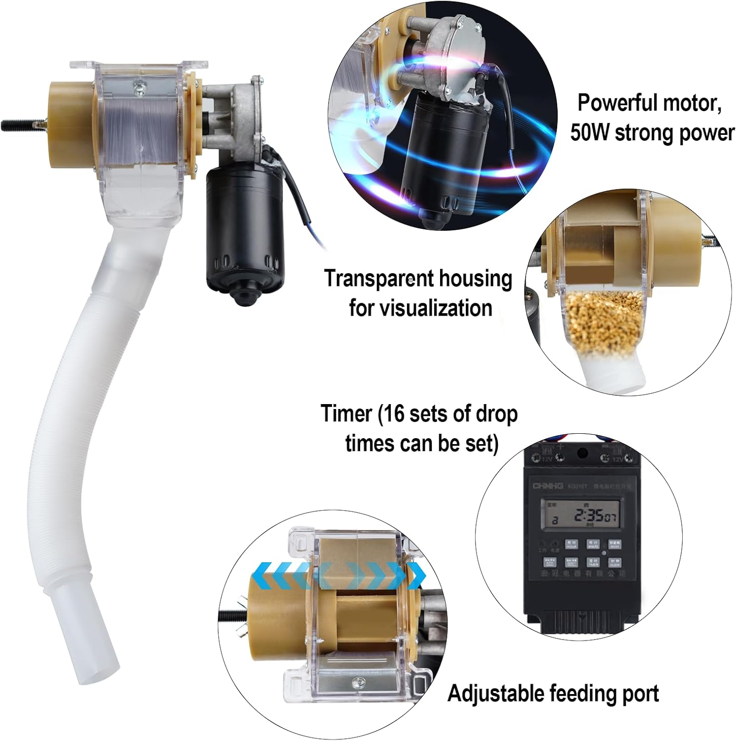 QUANTITATIVE FEEDER: The feeder can manually regulate the dimensions of the grain outlet, which could be adjusted in line with the abdomen quantity and variety of animals; Mixed with a timer to make sure exact supply of grain and scale back meals waste;