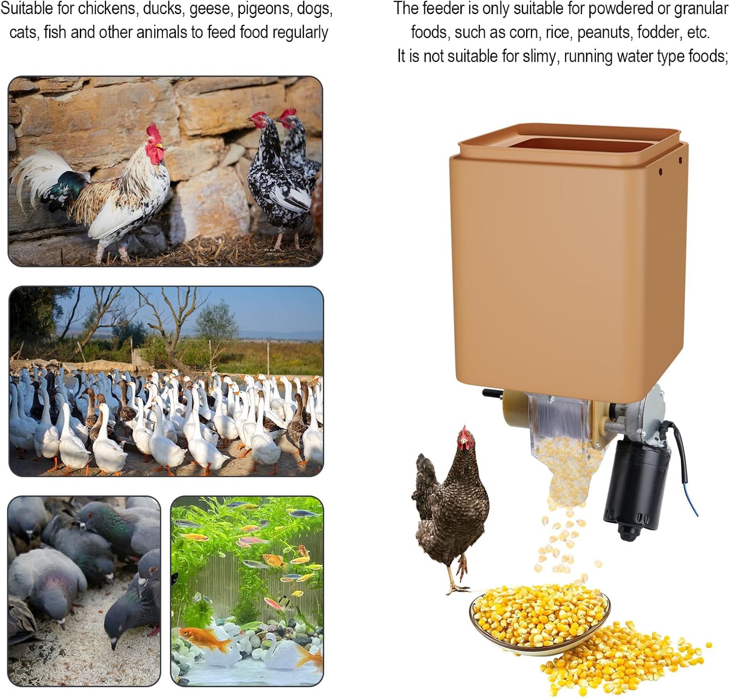 APPLICABLE SCENARIOS: The Poultry Feeder is simply appropriate for feeding powdered or granular meals akin to corn, rice, peanuts, and feed, and isn't appropriate for viscous or liquid meals; Appropriate for feeding animals akin to chickens, geese, geese, birds, fish, canines, cats, and deer;